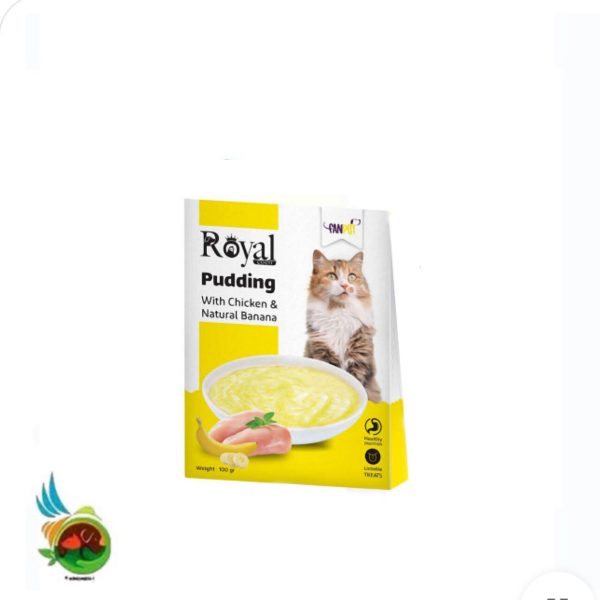 پودینگ گربه رویال کوکو طعم مرغ و موز Royal coco pudding with chicken & banana وزن ۱۰۰ گرم