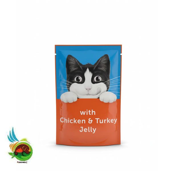 پوچ گربه فلیکس آلمانی با طعم مرغ و بوقلمون در ژله Felix with chicken & turkey in jelly وزن ۸۵ گرم