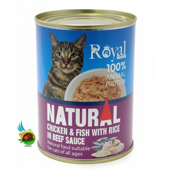 کنسرو نچرال گربه رویال کوکو طعم مرغ، ماهی و برنج Royal coco chicken and fish with rice وزن ۳۸۰ گرم