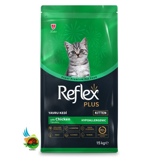 غذای بچه گربه رفلکس پلاس با طعم مرغ مدل Reflex Plus Chicken Kitten وزن ۱۵ کیلوگرم، تمامی عناصر مورد نیاز دوران رشد را فراهم می کند. دستیابی به رشد صحیح، بهینه سازی عملکرد سیستم ایمنی با به حداقل رساندن احتمال چاقی از دستاوردهای این غذاست. بچه گربه ها در حدود ۸ هفته گی از شیر مادر گرفته شده و از نظر تغذیه به صاحبان حیوانات خانگی وابسته می شوند.