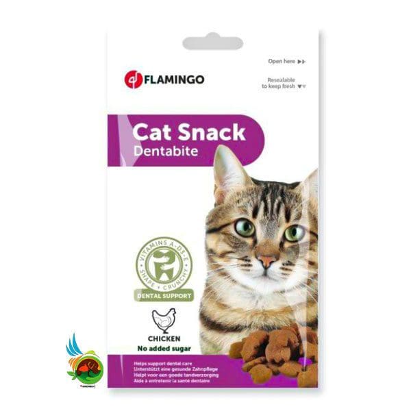 تشویقی دنتال گربه فلامینگو با طعم مرغ Flamingo cat snack dentabite وزن ۵۰ گرم