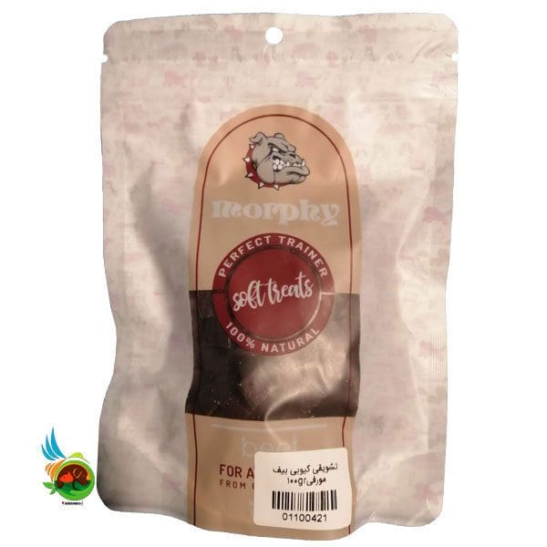 تشویقی سگ مدل کیوبی با طعم گوشت برند مورفی Morphy وزن ۱۰۰ گرم