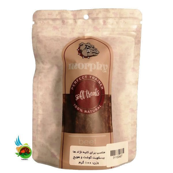 تشویقی سگ مدل بیسکویتی با طعم گوشت و هویچ برند مورفی Morphy وزن ۱۰۰ گرم