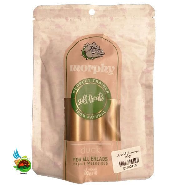 تشویقی سگ مدل سوسیس با طعم اردک برند مورفی Morphy وزن ۱۰۰ گرم
