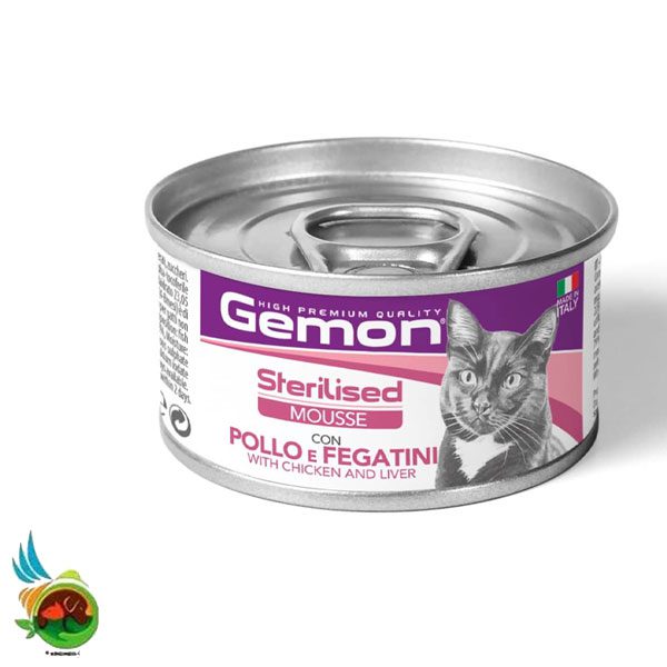 کنسرو گربه عقیم گمون طعم مرغ و جگر مدل موس Gemon sterilised mousse with chicken and liver وزن ۸۵ گرم